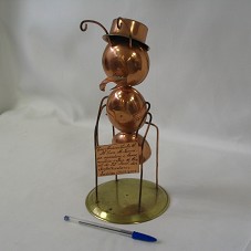 ESCULTURA (31 CM) EM METAL, RETRATANDO UMA FORMIGA OPERÁRIA, COM UM CHAPÉU. POSSUI UMA PLACA COM A INSCRIÇÃO 'LUIS INÁCIO LULA S. / A CAM. M. FORMIGA AGRADECE E HOMENAGEIA O PRES. DE HONRA DO PT PART. DOS TRABALHADORES. / FORMIGA 05/07/2001'.