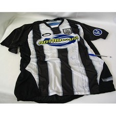 CAMISA DE FUTEBOL (TAM G) DO CENTRAL SPORT CLUB, COM LISTRAS VERTICAIS NAS CORES BRANCA E PRETA. NA FRENTE, BORDADO O EMBLEMA DO TIME E A LOGOMARCA DA ROTA DO MAR. ATRÁS, O NÚMERO '10', E A LOGOMARCA DA ROTA DO MAR. POSSUI A DEDICATÓRIA 'DO VICE-PRESIDENTE DO CENTRAL SPORT CLUB. SR RONALDO LIMA AO SR. PRSIDENTE DA REPÚBLICA LULA'.