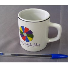 CANECA NA COR BRANCA(8X6,5 CM) EM CERÂMICA, COM ALÇA. POSSUI A LOGOMARCA DA PREFEITURA DE GUARUJÁ E A INSCRIÇÃO 'GUARUJÁ CIDADE FELIZ / PREFEITURA MUNICIPAL DE GUARUJÁ'.