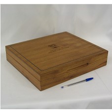 ESTOJO EM MADEIRA (37X31,5X7,5 CM), TENDO O BRASÃO DA 'PRESIDENCIA DE LA REPUBLICA DEL ECUADOR' NA TAMPA. NO INTERIOR, SUPORTE DE LIVRO, EM MADEIRA. NO FUNDO EXTERNO DO ESTOJO, A GRAVAÇÃO 'CAJA ELABORADA EN MADERA DE TANGARÉ, (NOMBRE CIENTÍFICO CARAPA GUIANENSIS AUBI) DE BOSQUES REFORESTADOS DEL TERRITORIO DE LA REPÚBLICA DEL ECUADOR'. ACOMPANHA CARTÃO DE VISITA DO AGENTE.