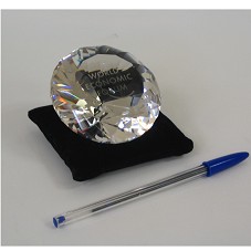 PEÇA EM CRISTAL (8X8X5 CM), NO FORMATO DE UM DIAMANTE LAPIDADO. POSSUI A INSCRIÇÃO 'WORLD ECONOMIC FORUM'. ACOMPANHA PEQUENA ALMOFADA EM TECIDO PRETO, PARA COLOCAÇÃO DA PEÇA; E, CERTIFICADO DE GARANTIA. ACONDICIONADOS EM CAIXA DE PAPELÃO, NA COR AZUL, COM LOGOMARCA DO FABRICANTE NA TAMPA.