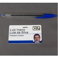 CRACHÁ (5,5X8,5 CM), CARTÃO MAGNÉTICO, COM FUNDO BRANCO E TARJA AZUL NA PARTE INFERIOR. POSSUI A INSCRIÇÃO 'LUIZ INACIO LULA DA SILVA / PRESIDENT OF BRAZIL', E, NO CANTO SUPERIOR DIREITO, '07 ANNUAL MEETING'; COM FOTOGRAFIA DO PRESIDENTE LULA. NO VERSO, 'STRATEGIC PARTNER OF THE WORLD ECONOMIC FORUM / OFFICIAL PROVIDER OF THE SECURE ACCESS BADGE SYSTEM'.