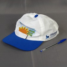 BONÉ EM TACTEL BRANCO, COM ABA AZUL. NA FRENTE, ESTAMPA EM AZUL COM AMARELO, MOSTRANDO O SOL, E A INSCRIÇÃO 'BR-101 NORDESTE / ONDE A VIDA É PRIORIDADE / OBEDEÇA A SINALIZAÇÃO / DIRIJA COM CUIDADO / EVITE JOGAR LIXO NA RODOVIA'. ATRÁS E NAS LATERAIS, NOMES DAS INSTITUIÇÕES GOVERNAMENTAIS.