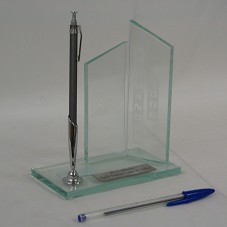 PORTA-CANETA (17X14X8 CM - MEDIDAS DO OBJETO INTEIRO) EM PLÁSTICO PRATEADO, FIXADO SOBRE BASE RETANGULAR DE VIDRO, ONDE HÁ DUAS PLACAS DE VIDRO FIXADAS NA VERTICAL, CONTENDO A INSCRIÇÃO 'UNIBAN / FORMANDOS 2006'. NA BASE, PLACA METÁLICA COM A GRAVAÇÃO 'PRESIDENTE LUIS INÁCIO LULA DA SILVA'. ACOMPANHA CANETA ESFEROGRÁFICA, COM CORPO EM COR GRAFITE.