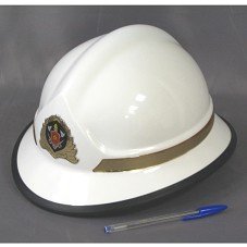 CAPACETE DE SEGURANÇA, DE SALVAMENTO PARA BOMBEIROS, NA COR BRANCA, COM SUSPENSÃO FASTAC, JUGULAR COM QUEIXEIRA, DUAS TIRAS ABSORVENTES DE SUOR (TESTEIRA E NUCA), UM PROTETOR DE BORRACHA PARA ABA E FAIXAS REFLETIVAS DOURADAS NAS LATERAIS. NA FRENTE, BRASÃO COM ESCUDO VERMELHO. ACOMPANHA FOLDER DE INSTRUÇÕES DE USO.