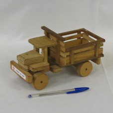 MINIATURA DE CAMINHÃO (12X23X10 CM) CONFECCIONADO EM MADEIRA. NA PARTE FRONTAL, NO PÁRA-CHOQUE, ETIQUETA COLADA COM A INSCRIÇÃO 'PT / UTINGA - BA - 2007'.