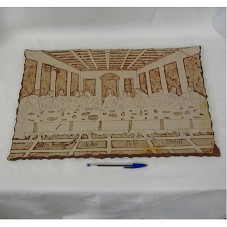 QUADRO (36X55 CM) ESCULPIDO EM PEDAÇO RETANGULAR DE PEDRA MARROM-ROSEADA, REPRESENTANDO A CENA DA SANTA CEIA. POSSUI BORDAS LASCADAS. NA PARTE INFERIOR, A GRAVAÇÃO 'SOUTO SOARES / BAHIA / LULA / BRASIL'. NO CANTO INFERIOR DIREITO, ASSINATURA DO ARTISTA 'ARTE MIGUEL'. NA PARTE SUPERIOR, UM ARAME FIXADO PARA FIXAÇÃO DO QUADRO EM PAREDE.