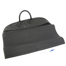 MALA, TIPO PORTA-TERNO/CAMISA/BLAZER, EM COURO PRETO, COM A LOGOMARCA DO BANCO DO BRASIL NA PARTE FRONTAL SUPERIOR. POSSUI UMA ALÇA E FECHAMENTO EM ZÍPER. ACONDICIONADA EM CAIXA DE PAPELÃO, COM A LOGOMARCA DO BANCO NA TAMPA.