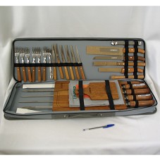 CONJUNTO PARA CHURRASCO CONTENDO: SEIS FACAS E SEIS GARFOS; UMA COLHER; UM SOQUETE; UM PEGADOR DE GELO; UMA FACA DE PÃO, UMA DE CHURRASCO, UMA PARA FILETAR E UM GARFO LONGO; QUATRO ESPETOS; UMA FACA SERRILHADA COM CABO LONGO; UM GARFO DE CHURRASCO COM CABO LONGO; UMA PRANCHA/TÁBUA DE MADEIRA GRANDE E UMA PEQUENA; UM AVENTAL E UM LIVRETO 'MANUAL DO CHURRASCO'. TUDO ACONDICIONADO EM ESTOJO/MALETA EMBORRACHADO, NA COR CINZA, COM A INSCRIÇÃO 'UNIPAR' EM UM DOS LADOS.