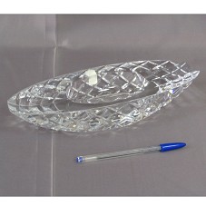 CINZEIRO EM CRISTAL (30X11,5X4,5 CM) COM FACES EXTERNAS LAPIDADAS EM LOSANGOS. POSSUI SELO COM A INSCRIÇÃO 'MILLER ROGASKA CRISTAL / HANDMADE SLOVENIA'. NO FUNDO, GRAVAÇÃO 'DIAMOND CROWN' E DESENHO DE UMA COROA. ACONDICIONADO EM SACO DE VELUDO AZUL MARINHO, COM A LOGOMARCA DO FABRICANTE NA FRENTE.