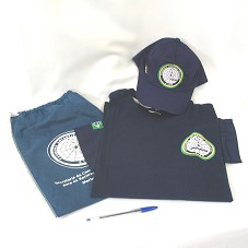CAMISETA (TAM G) EM MALHA AZUL MARINHO, DE MANGA CURTA. NA FRENTE, BORDADO EM VERDE, AMARELO, AZUL E BRANCO, LOGOMARCA DO 'PROGRAMA ANTÁRTICO BRASILEIRO / PROANTAR'. NO VERSO, 'PETROBRÁS' E LOGOMARCA. EM UMA DAS MANGAS, A BANDEIRA DO BRASIL. ACOMPANHA BONÉ EM BRIM AZUL MARINHO, TENDO NA PARTE FRONTAL O MESMO BORDADO E UM BÓTON NO FORMATO DE UM PINGUIM PRESO A ELE. ACONDICIONADOS EM SACO DE TNT AZUL COM A INSCRIÇÃO 'SECRETARIA DA COMISSÃO INTERMINISTERIAL PARA RECURSOS DO MAR - SECIRM / MARINHA DO BRASIL'.