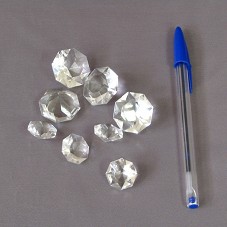 OITO PEÇAS EM CRISTAL COM 24%PBO, LAPIDADAS COMO DIAMANTES, SENDO QUATRO EM TAMANHO PEQUENO, E QUATRO EM TAMANHO MÉDIO. ACONDICIONADAS EM SACO DE TULE BRANCO.