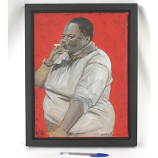 PINTURA SOBRE TELA (39,5X29,5 CM) COM FUNDO VERMELHO, RETRATANDO A FIGURA DE UMA MULHER NEGRA FUMANDO. NO CANTO INFERIOR DIREITO, ASSINATURA DO ARTISTA 'NONATTO 2001'. POSSUI MOLDURA PRETA (45,5X35,5 CM). ATRÁS, A INSCRIÇÃO 'NONATTO 2001 / RAIMUNDO NONATTO COELHO / ATENAS' E, 'AO PRESIDENTE LULA ESTE 'RETRATO DE NEGRA' PELA SUA LUTA DE JUSTIÇA SOCIAL, PELA FÉ DE NÓS BRASILEIROS NO SEU GOVERNO... / NONATTO COELHO / INHUMAS - GO / 20-03-2007'.