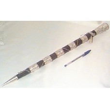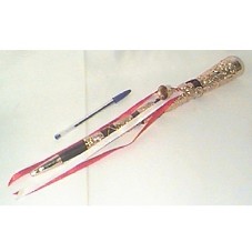 'BASTÃO DE MANDO INCA' CONFECCIONADO EM MADEIRA E METAL DOURADO, TRABALHADO E FITAS DE CETIM VERMELHA E BRANCA. ACONDICIONADO EM ESTOJO DE VELUDO PRETO. ACOMPANHA CARTÃO COM PEQUENA INFORMAÇÃO SOBRE O BASTÃO.