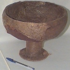 FRUTEIRA (27X22 CM) COM ESTRUTURA EM GALÃO DE ÁGUA DE PVC, FORRADA COM CASCA DE COQUEIRO SECA.