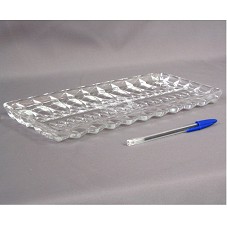 PETISQUEIRA (30,5X15X2 CM) EM CRISTAL, COM PARTE EXTERNA TRABALHADA EM BAIXO RELEVO. NA PARTE INTERNA, NO CENTRO, BRASÃO DE SANTA CATARINA. ACONDICIONADA EM CAIXA DE PAPELÃO, TENDO NA TAMPA ETIQUETA COM DESENHO DO MESMO BRASÃO. NA LATERAL, REFERÊNCIA DO OBJETO 'PRATO SALGADINHOS LN 791 LISO / CRISTAIS HERING'.