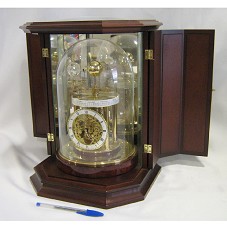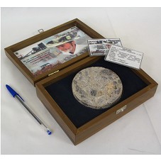 ASTROLÁBIO (21 CM) SOBRE BASE DE MADEIRA ENVERNIZADA PROTEGIDO POR REDOMA DE VIDRO (20X29 CM). ACONDICIONADO EM CAIXA DE MADEIRA ENVERNIZADA (37X30X29 CM), ESPELHADA POR DENTRO E COM VIDRO (LENTE DE AUMENTO) NA PARTE SUPERIOR. ACONDICIONADOS EM UMA CAIXA BRANCA DE PAPELÃO.
