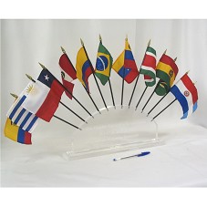 PLACA/BASE (17X40X5 CM) ACRÍLICA, CONTENDO A INSCRIÇÃO '1RA. CUMBRE ENERGÉTICA SURAMERICANA / 16 Y 17 DE ABRIL DE 2007 / ISLA DE MARGARITA, VENEZUELA'. NA PARTE SUPERIOR, HASTES COM MINIATURA DAS DOZE BANDEIRAS DOS PAÍSES SUL-AMERICANOS PARTICIPANTES.