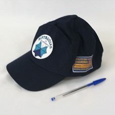 BONÉ EM BRIM AZUL MARINHO. NA FRENTE, ESTAMPA COM A INSCRIÇÃO 'SINTREJÓIAS' E LOGOMARCA. NAS LATERAIS, 'SINDICATO DOS TRABALHADORES JOALHEIROS - SÃO PAULO / FONE: 11 3106-9122 / WWW.SINTRAJOIAS.COM.BR'.