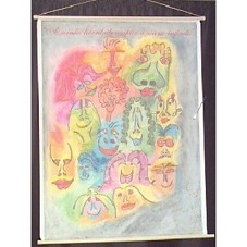 BANNER (120X91,5 CM) CONFECCIONADO EM PAPEL, COM DESENHO IMPRESSO NA FRENTE, FUNDO EM AZUL-ACINZENTADO E MOTIVOS COLORIDOS, PREDOMINANDO AS CORES VERDE E AMARELO. DESENHO CARICATURADO DE VÁRIAS FACES. NA PARTE SUPERIOR, EM VERMELHO, A INSCRIÇÃO 'A MINHA LIBERDADE AMPLIA A SUA AO INFINITO'; E, NA PARTE INFERIOR, VÁRIAS ASSINATURAS EM CANETA ESFEROGRÁFICA.