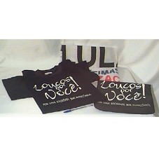 CAMISETA EM MALHA PRETA, COM AS INSCRIÇÕES 'LOUCOS POR VOCÊ! POR UMA SOCIEDADE SEM MANICÔMIOS' (NA FRENTE) E 'LIBERDADE É O MELHOR CUIDADO!' (NAS COSTAS) PINTADAS EM BRANCO; FAIXA BRANCA (100X81) COM OS DIZERES 'AO NOSSO AMIGO QUERIDO PRESIDENTE LULA NÓS AS VÍTIMAS EXIGIMOS: 1º INDENIZAÇÕES DOS ERROS E CRIMES DA PSIQUIATRIA NO BRASIL. 2º PROIBIÇÃO DA ELETROCONVULSOTERAPIA ... JÁ! ECT, É FRITURA DE NEURÔNIOS.', ACONDICIONADOS EM SACO PRETO (44X28 CM), CONFECCIONADO EM TNT, CONTENDO A MESMA INSCRIÇÃO DA CAMISETA, PINTADA EM BRANCO.