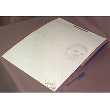 DESENHO EM PAPEL CANSON (TAM A3) DO PRESIDENTE LUIZ INÁCIO LULA DA SILVA,USANDO A FAIXA PRESIDENCIAL. DESENHO COLOCADO EM PASTA ABERTA NA COR AZUL MARINHO. NO VERSO DO DESENHO, ESTÁ ESCRITO: 'DE: GUILHERME BARREIROS PARA: EXCELENTISSIMO SENHOR PRESIDENTE LUIZ INACIO LULA DA SILVA 27/05/2003'. NA CONTRA-CAPA DA PASTA: 'GUILHERME B. RUBIRELLO SANTO ANDRÉ - SP TENHO 11 ANOS FEZ O DESENHO OLHANDO UMA FOTO'.