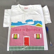 CAMISETA (TAM M) EM MALHA BRANCA, DE MANGA CURTA. NA FRENTE, ESTAMPA COLORIDA COM DESENHO DE UMA CASA, E A INSCRIÇÃO 'CASA DE BONECA'. NA PARTE SUPERIOR, 'PREFEITURA DE RECIFE / A GRANDE OBRA É CUIDAR DAS PESSOAS'. ATRÁS, MESMA LOGOMARCA DA PREFEITURA E 'PRODARTE / PROGRAMA DE DESENVOLVIMENTO DO ARTESANATO'.
