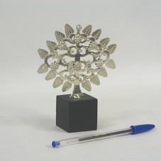 ESCULTURA(9 CM), EM PRATA 925, REPRESENTANDO A ÁRVORE DA VIDA. DO TRONCO PRINCIPAL SAEM DIVERSOS RAMOS, E PRÓXIMO À SUA BASE, A REPRESENTAÇÃO DE ADÃO E EVA, EM FIGURAS HUMANAS. POSSUI ALGUMAS FLORES E A FIGURA DE DUAS POMBAS. FIXADA EM BASE PRETA (3,8X3,8X3,8 CM). NA PARTE POSTERIOR, PRÓXIMO À BASE, A INSCRIÇÃO '925 / MÉXICO / GLEMUS'.