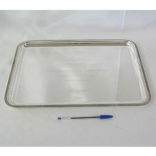 BANDEJA RASA (32X42 CM) EM PRATA, COM BORDAS TRABALHADAS. NA PARTE INTERNA, A INSCRIÇÃO 'HOMENAGEM DO COMITÊ OLÍMPICO BRASILEIRO AO EXCELENTÍSSIMO SENHOR PRESIDENTE DA REPÚBLICA FEDERATIVA DO BRASIL LUIZ INÁCIO LULA DA SILVA / PELO APOIO DO GOVERNO FEDERAL À PARTICIPAÇÃO DA DELEGAÇÃO BRASILEIRA NOS XV JOGOS PAN-AMERICANOS RIO 2007, COM O RECORDE DE 161 MEDALHAS: 54 DE OURO, 40 DE PRATA E 67 DE BRONZE. BRASÍLIA, 3 DE AGOSTO DE 2007 / CARLOS ARTHUR NUZMAN / PRESIDENTE'. ACONDICIONADA EM CAIXA FORRADA DE NAPA VERDE, COM O NOME DO FABRICANTE NA TAMPA.