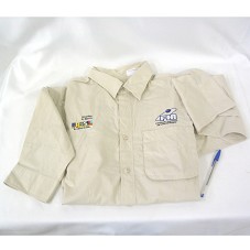 CAMISA SOCIAL (TAM G) EM TECIDO BEGE, DE MANGA COMPRIDA. NA FRENTE, BORDADO, LOGOMARCA DO GOVERNO FEDERAL, 'MINISTÉRIO DO ESPORTE' E 'FIA / FUNDAÇÃO INSTITUTO DE ADMINISTRAÇÃO'. ATRÁS, LOGOMARCA DOS JOGOS PAN-AMERICANOS RIO 2007. NAS MANGAS, BANDEIRA DO BRASIL E LOGOMARCA DO 'PNUD BRASIL'.