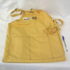 AVENTAL GRANDE, EM TECIDO OCRE, COM TRÊS BOLSOS FRONTAIS. ACIMA DOS BOLSOS, BORDADO, LOGOMARCA DO GOVERNO FEDERAL, 'MINISTÉRIO DO ESPORTE' E 'COMISSARIA RIO ISO 9001'.