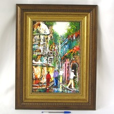 PINTURA (36,5X24 CM) SOBRE MADEIRA, RETRATANDO PAISAGEM URBANA, COM CONSTRUÇÕES ANTIGAS, E ALGUMAS PESSOAS PELA RUA. NO CANTO INFERIOR CENTRAL, ASSINATURA DO ARTISTA (ILEGÍVEL). POSSUI MOLDURA (54X41,5 CM) EM MADEIRA TRABALHADA E EM TONS DE MARROM-DOURADO. NA PARTE POSTERIOR, ETIQUETA COM A INSCRIÇÃO 'PRESIDENCIA DE LA REPÚBLICA HONDURAS, C.A. / JOSÉ MANUEL ZELAYA ROSALES / PRESIDENTE 2006-2010'.