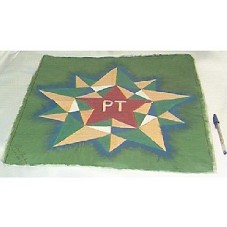 PINTURA (44X49,5 CM) EM TECIDO DA ESTRELA DO PT, DENTRO DE UMA ROSA DOS VENTOS, PINTADA COM AS CORES AMARELO, VERDE, AZUL E BRANCO. PINTURA COM FUNDO VERDE. CONTÉM A ASSINATURA DO ARTISTA 'CLARA FONTANA SIMON 2003'.