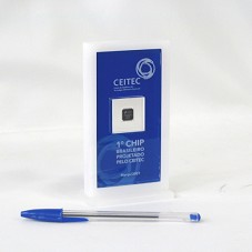 CHIP ELETRÔNICO (10X10 MM) CONTENDO A INSCRIÇÃO 'ALTUS / GBL 0224-028.9 / ... / CEITEC'. EMOLDURADO POR PLACA DE ACRÍLICO COM BORDAS AZULADAS E A GRAVAÇÃO 'CEITEC / CENTRO DE EXCELÊNCIA EM TECNOLOGIA ELETRÔNICA E AVANÇADA / 1º CHIP BRASILEIRO PROJETADO PELO CEITEC / MARÇO/2007'. ACONDICIONADO EM CAIXA AZULADA, COM NOME DA EMPRESA NA TAMPA.