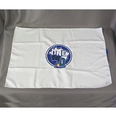 LENÇO (49X69 CM) EM TECIDO BRANCO. NA PARTE CENTRAL, BORDADO EM AZUL, VERDE E AMARELO, A INSCRIÇÃO 'UNE / 70 ANOS' E DESENHO DO MAPA DO BRASIL.