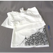CAMISETA (TAM GG) EM MALHA BRANCA, DE MANGA CURTA. NA FRENTE, NA PARTE INFERIOR, ESTAMPA EM PRETO MOSTRANDO UM AGLOMERADO DE CASAS DE MADEIRA, COMO NUMA FAVELA. ATRÁS, MESMA ESTAMPA E, LOGOMARCA DA ONG 'AÇÃO COMUNITÁRIA DO BRASIL / RIO DE JANEIRO'.