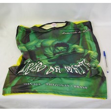 CAMISETA REGATA (TAM G). POSSUI FRENTE EM TONS DE VERDE E PRETO, COM IMAGEM DO PERSONAGEM 'HUCK' E A INSCRIÇÃO ' TRIBO DA MATA / MANAUS AMAZONAS BRASIL / HAMIRALDO DA MATTA'. PARTE POSTERIOR NA COR AMARELA, COM BRASÃO DA PREFEITURA E INSCRIÇÃO 'MANAUS / PREFEITURA / MOSTRANDO TRABALHO' E 'ABYARA'.