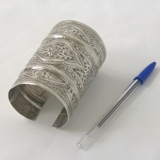 BRACELETE (10,3 CM) CONFECCIONADO EM PRATA, ORNADO COM DESENHOS FLORAIS E PARREIRAS DE UVAS. ACONDICIONADO EM MINIATURA DE BAÚ, FORRADO EM NAPA AZUL MARINHO.