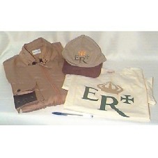 UMA JAQUETA (TAM. 'G') SEM MANGA, COR OCRE, COM QUATRO BOLSOS FRONTAIS, ZÍPER NA FRENTE E CORDÕES NO PESCOÇO E BARRA PARA AJUSTE, EMBLEMA DO PROGRAMA ESTRADA REAL 'ER' EM COURO MARROM NUM DOS BOLSOS, E DO SISTEMA FIEMG 'FIEMG CIEMG SESI SENAI IEL' EM OUTRO BOLSO. CAMISETA (TAM. 'XG') BEGE CLARO, EM MALHA, COM O EMBLEMA DO INSTITUTO REAL ESTRADA 'ER' NA FRENTE, E, NA PARTE POSTERIOR: 'MINAS GERAIS GOVERNO DO ESTADO CONSTRUINDO UM NOVO TEMPO', 'INSTITUTO ESTRADA REAL' E 'FIEMG CIEMG SESI SENAI IEL SISTEMA FIEMG'. BONÉ EM JEANS, COR CAQUE COM VISEIRA MARROM EM CAMURÇA, COM EMBLEMA DO INSTITUTO ESTRADA REAL. ACONDICIONADOS NUMA SACOLA DE PAPELÃO COM PROPAGANDA DO SISTEMA FIEMG 'TRANSFORMANDO TRABALHO EM QUALIDADE DE VIDA'.