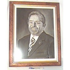 RETRATO (42X56 CM) DO PRESIDENTE LUIZ INÁCIO LULA DA SILVA, FEITO EM GRAFITE, COM MOLDURA EM MADEIRA (56X68). ASSINADO PELO AUTOR 'JOSELITO 2003'.