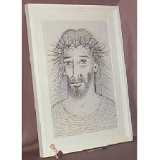 QUADRO (81X62,5 CM) CONTENDO O DESENHO DO CRISTO REALIZADO COM CARIMBO: 'LULA E MARISA', EM PRETO E BRANCO. MOLDURA EM MADEIRA PINTADA DE BRANCO, FECHADA POR VIDRO. DESENHO ASSINADO PELO AUTOR 'MANO ALENCAR'. ACOMPANHA O CARIMBO COM O QUAL FOI REALIZADO.
