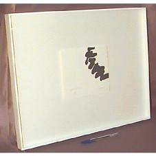 PINTURA (15X17,5 CM) INTITULADA 'FELICITACIÓN ANO NUEVO 1968', REALIZADA EM PAPEL CANSON, COM DESENHO ABSTRATO EM PRETO, CONTENDO ASSINATURA DO TITULAR E DATA EM GRAFITE. MOLDURA (40X50 CM) EM ALUMÍNIO PINTADO DE BRANCO, FORMANDO UMA CAIXA DE VIDRO.