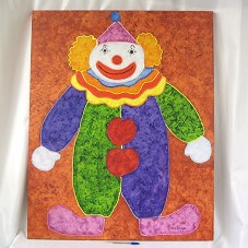QUADRO (100X80 CM) SEM MOLDURA, COM PINTURA SOBRE TELA RETRATANDO UM PALHAÇO COM MACACÃO COLORIDO, SOBRE FUNDO EM TOM TERRACOTA. NO CANTO INFERIOR DIREITO, ASSINATURA DA ARTISTA 'MELINA'. ATRÁS, TÍTULO DO QUADRO 'PALHAÇO SHOW'.