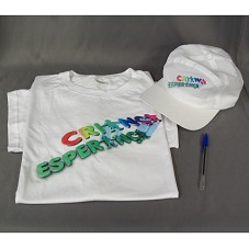 CAMISETA (TAM GG) EM MALHA BRANCA, DE MANGA CURTA. NA FRENTE, ESTAMPA COLORIDA COM A INSCRIÇÃO/LOGOMARCA 'CRIANÇA ESPERANÇA'. ACOMPANHA BONÉ EM TACTEL BRANCO, COM MESMA ESTAMPA.