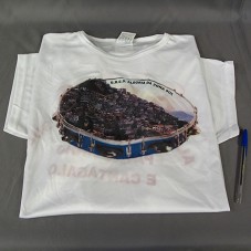 CAMISETA (TAM EGG) EM MALHA BRANCA, DE MANGA CURTA. NA FRENTE, ESTAMPA COM MONTAGEM FOTOGRÁFICA MOSTRANDO UM PANDEIRO, E, EM SEU COURO, O RETRATO DE UMA FAVELA, COM A INSCRIÇÃO 'G.R.E.S. ALEGRIA DA ZONA SUL'. ATRÁS, EM VERMELHO, 'G.R.E.S. ALEGRIA DA ZONA SUL / PAVÃO, PAVÃOZINHO E CANTAGALO'.