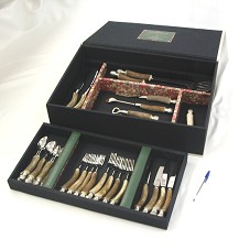 FAQUEIRO PARA CHURRASCO, EM AÇO INOX, COM CABO TRABALHADO EM OSSO E PRATA 925, CONTENDO VINTE E NOVE PEÇAS. ACONDICIONADO EM ESTOJO FORRADO DE TECIDO BEGE, TENDO NA PARTE INTERNA DA TAMPA A INSCRIÇÃO 'PRESENTED TO HIS EXCELLENCY LUIZ INÁCIO LULA DA SILVA / PRESIDENT OF THE FEDERATIVE REPUBLIC OF BRAZIL / AND MRS. MARISA LETÍCIA LULA DA SILVA / BY THE PRESIDENT OF THE UNITED STATES OF AMERICA / AND MRS. LAURA BUSH / ON THE OCCASION OF THEIR VISIT TO THE FEDERATIVE REPUBLIC OF BRAZIL / MARCH 2007'. ACOMPANHA CARTÃO DE APRESENTAÇÃO EM NOME DO AGENTE.