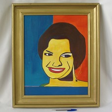 PINTURA SOBRE TELA (48,5X38,5 CM) RETRATANDO DESENHO ESTILIZADO DA PRIMEIRA-DAMA MARISA LETÍCIA LULA DA SILVA. NO CANTO INFERIOR DIREITO, ASSINATURA DA ARTISTA 'PIAZZETTA'. PREDOMINA AS CORES AZUL, VERMELHO E MARROM. POSSUI MOLDURA EM MADEIRA PINTADA DE DOURADO. ATRÁS, A INSCRIÇÃO 'COR FLOR E MULHER / SUELI PIAZZETTA 2007'. E PAPEL COLADO CONTENDO A FOTOGRAFIA DA PRIMEIRA-DAMA.