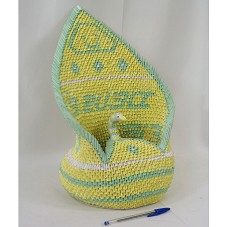 ARTESANATO (39,5X23X21 CM) CONFECCIONADO EM DOBRADURA DE PAPEL, REPRESENTANDO UM CISNE, NAS CORES AMARELO, VERDE E BRANCO. NA CALDA, A INSCRIÇÃO 'DEUS É FIEL'.