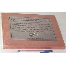 PLACA (15X20 CM) EM METAL POLIDO, COM OS SEGUINTES LOGOTIPOS: DO FIGUEIRENSE F.C., DA REDE 13, E DO FOME ZERO. CONTÉM OS DIZERES GRAVADOS EM PRETO: 'FIGUEIRENSE F.C. X S. C. CORINTHIANS CAMPEONATO BRASILEIRO SÉRIE 'A' 2003 A HOMENAGEM DOS DIRIGENTES E TORCEDORES DO FIGUEIRENSE F. C. AO EXCELENTÍSSIMO SR. PRESIDENTE DA REPÚBLICA, LUIZ INÁCIO LULA DA SILVA, POR OCASIÃO DO ENGAJAMENTO DO CLUBE NO CONCEITUADO PROGRAMA FOME ZERO. FLORIANÓPOLIS (SC), 06 DE ABRIL DE 2003'. AFIXADA EM PLACA DE MADEIRA (25,5X20X2 CM) POLIDA E ENVERNIZADA, COM FUNDO EM PAPEL CAMURÇA PRETO.