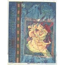TELA (90X70 CM) PINTADA EM TONS DE AZUL E MONTADA COM RETALHOS DE OUTRAS TELAS. MOSTRA CASAIS SE BEIJANDO E SE ABRAÇANDO. AO CENTRO, UMA PLACA DE EUCATEX (50X40 CM), COLADA NA TELA, MOSTRANDO UM CASAL SE BEIJANDO, PINTADO EM AMARELO. ESCRITO EM AZUL, NA ALTURA DA TELA 'Á DENISE INDA UM C'OIÁ BÔ MÁ CÉSAR DÁ UM BIJIM'. TELA ASSINADA PELO ARTISTA 'MANUEL FIGUEIRA 96' E, PLACA 'MANUEL FIGUEIRA 97'. ATRÁS DA TELA, OS DIZERES 'Á DENISE INDA UM C'OIÁ BÔ MÁ CÉSAR DÁ UM BIJIM S.V. - CABO VERDE'. A TELA NÃO ESTÁ EMOLDURADA.